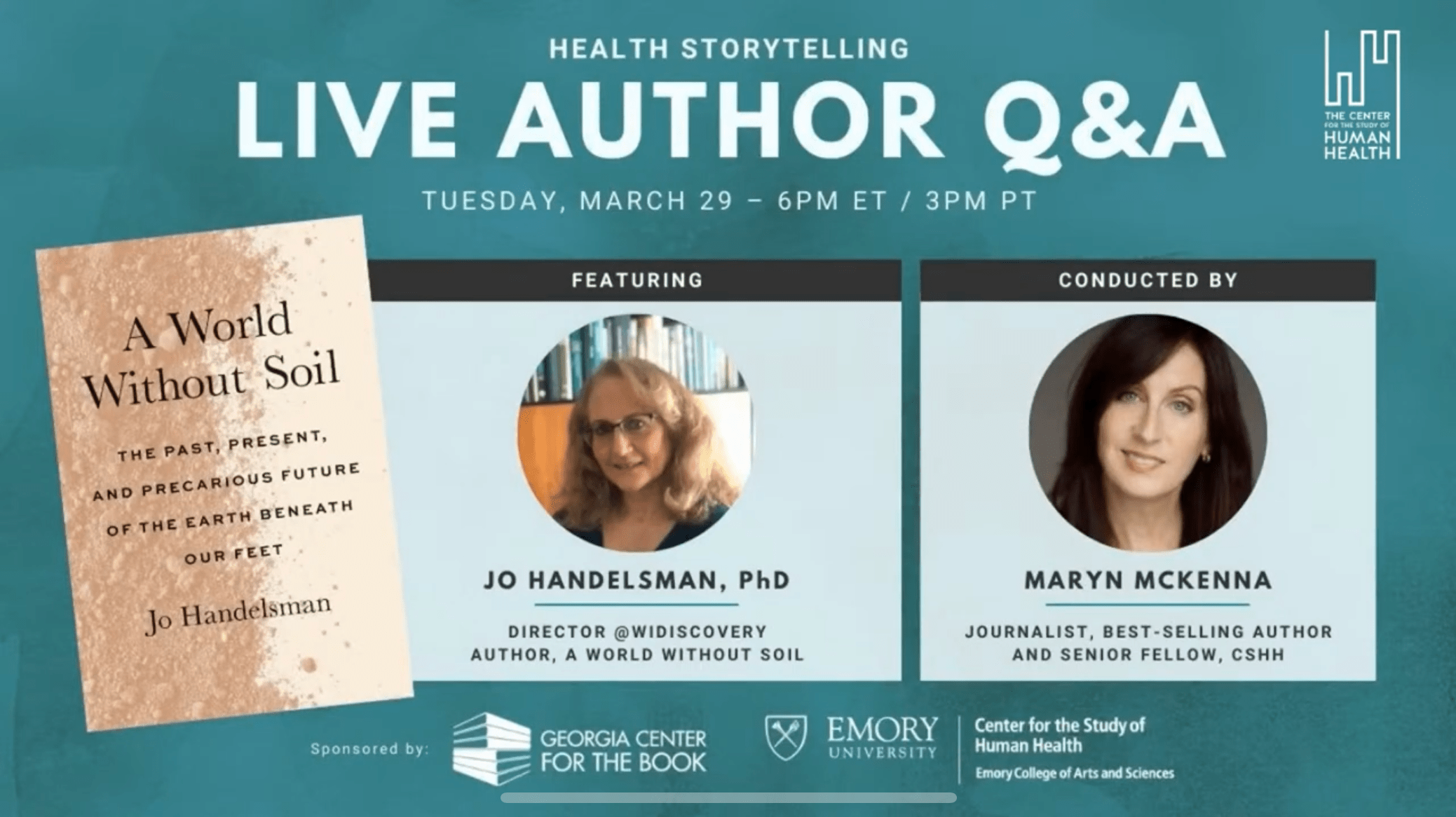 Jo Handelsman discusses science policy, soil formation, and soil protection on the Health Storytelling Author Q&A Series with Maryn McKenna.
